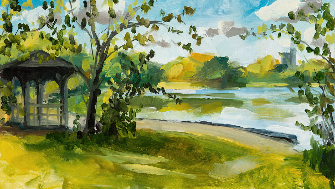 Prospect Park pond - Oil on panel, 12" x 6.8", Summer 2019