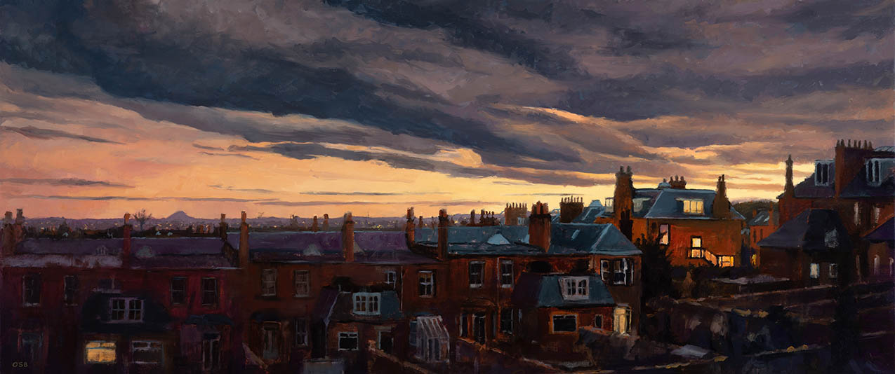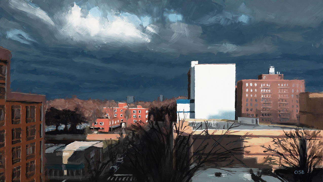 Dark skies over Parade Grounds - Oil on panel, 16" x 9.1", May 2021