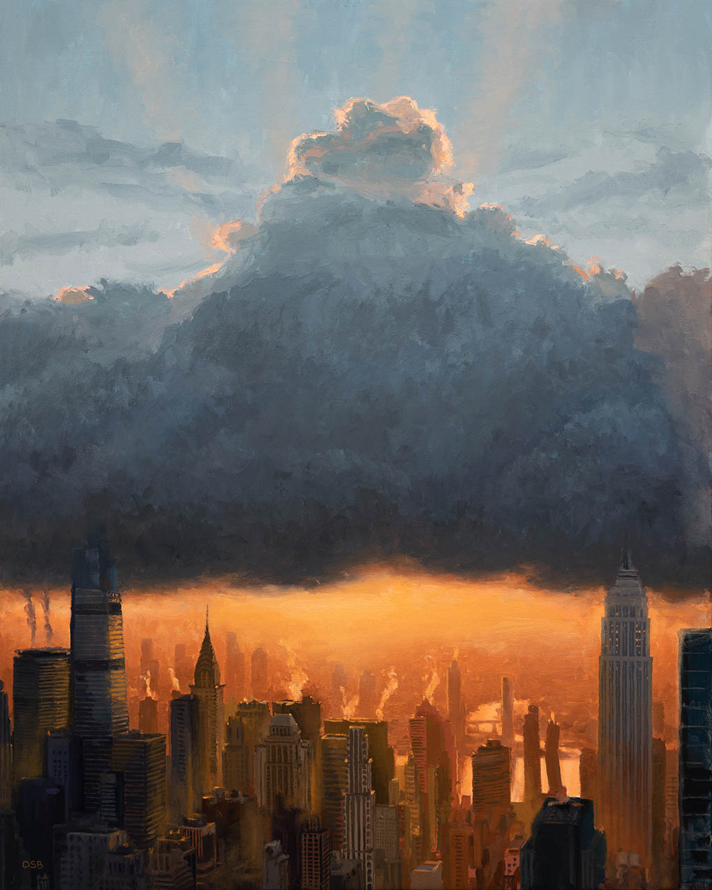 Sunrise from 30 Hudson Yards - Oil on canvas, 24" x 30", April 2022