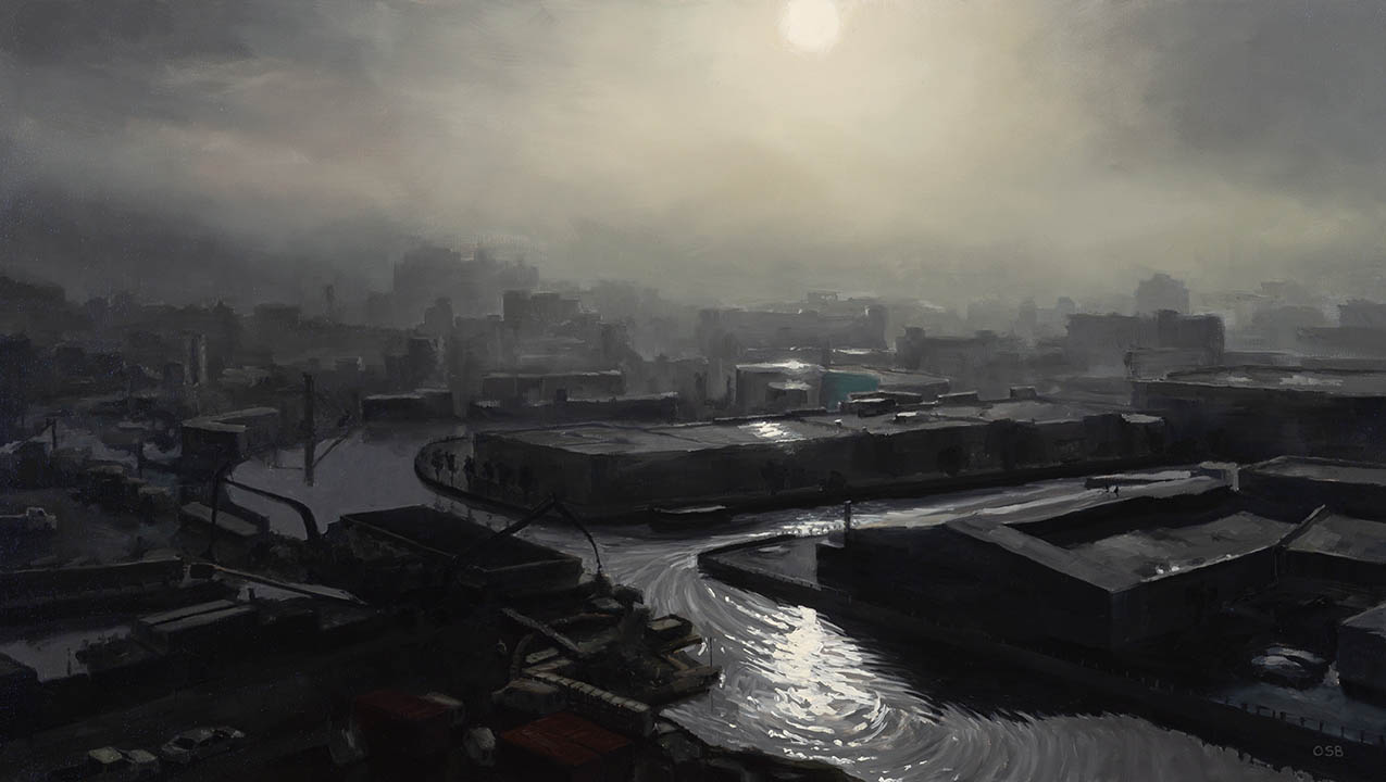 Sunrise Over Gowanus - Oil on canvas, 32" x 18", September 2018