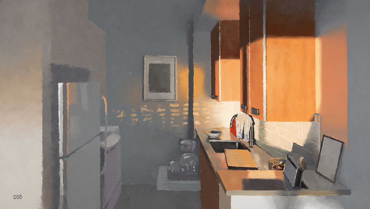 Interior #5 (Caton Place kitchen) - Oil on panel, 16" x 9.1", May 2021